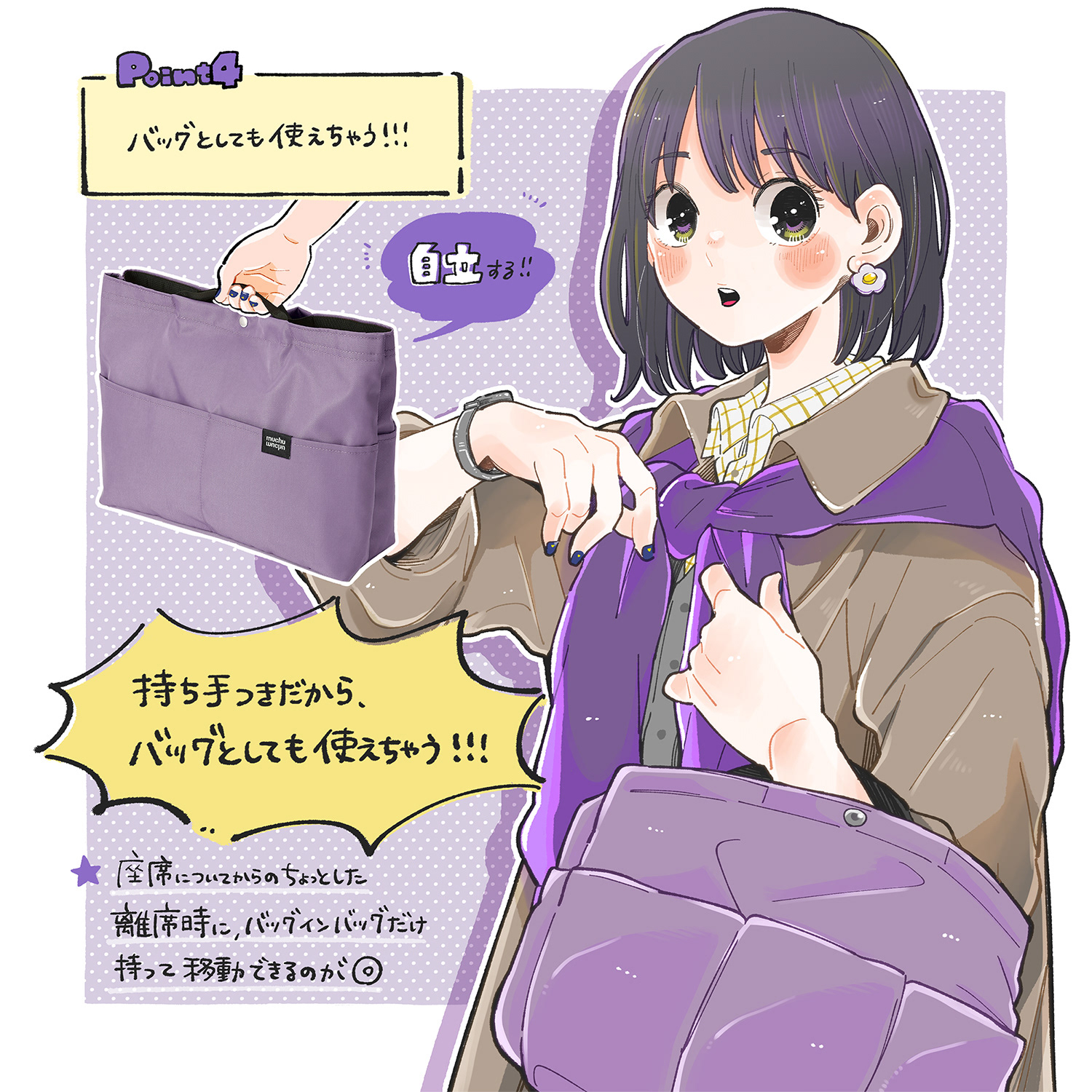 muchu muchu バッグインバッグ 商品紹介イラスト
